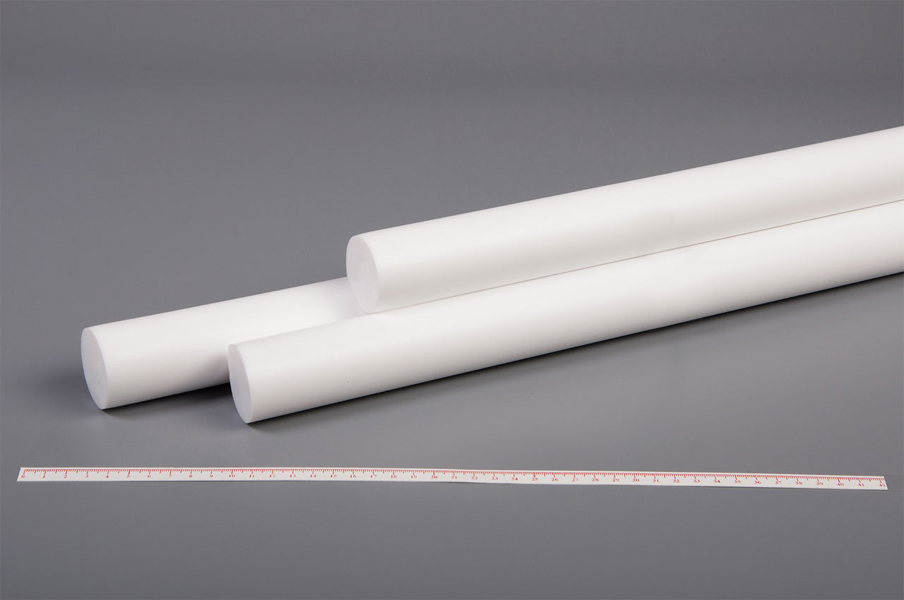 Диаметр, мм: 40 (+2.4)Длина стержня, мм: ~1000 (±2)Марка: Ф-4 вертикальная экструзия, содержание первичного сырья 100%Применение: Фторопласт (Политетрафторэтилен Ф-4) стержни, произведен по ТУ 6-05-041-535-74. Используется для изготовления путем механической обработки уплотнительных, электроизоляционных, антифрикционных, химически стойких элементов конструкций, применяемых в различных отраслях промышленности, в том числе пищевых отраслях и медицине в качестве деталей технологического оборудования (прокладки, манжеты, вкладыши, подшипники, фильеры, мембраны и др). У фторопласта самый низкий среди конструкционных материалов коэффициент трения, что обуславливает широкое его применение в машиностроении. В пищевой промышленности и бытовой технике фторопласт используется для изготовления облицовки валков для раскатки теста, антиадгезионных и антипригарных покрытий, для изготовления уплотнений молочных насосов и насосов для пищевых жидкостей и др.