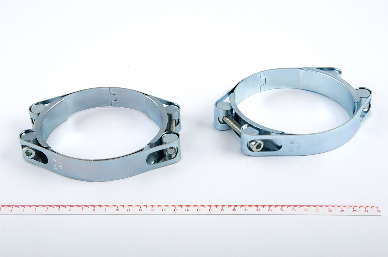 Рабочий диапазон (наружный диаметр рукава/шланга), мм: от 105 до 115Материал ленты: оцинкованная сталь (W1)Ширина ленты, мм: 24Размеры болта: М8х60Применение: двухболтовые силовые хомуты применяются при зажиме жестких шлангов и толстостенных рукавов, металлорукавов, гидропневмоприводов, дренажных насосов. Это усиленный вариант одноболтовых хомутов, которые применяют для сильного зажима. Выдерживают значительное усилие давления и вибрационные нагрузки. Крепежи с двумя болтами изготовлены из прочной стали W1 с оцинкованным покрытием, которое предохраняет механизм от коррозии.