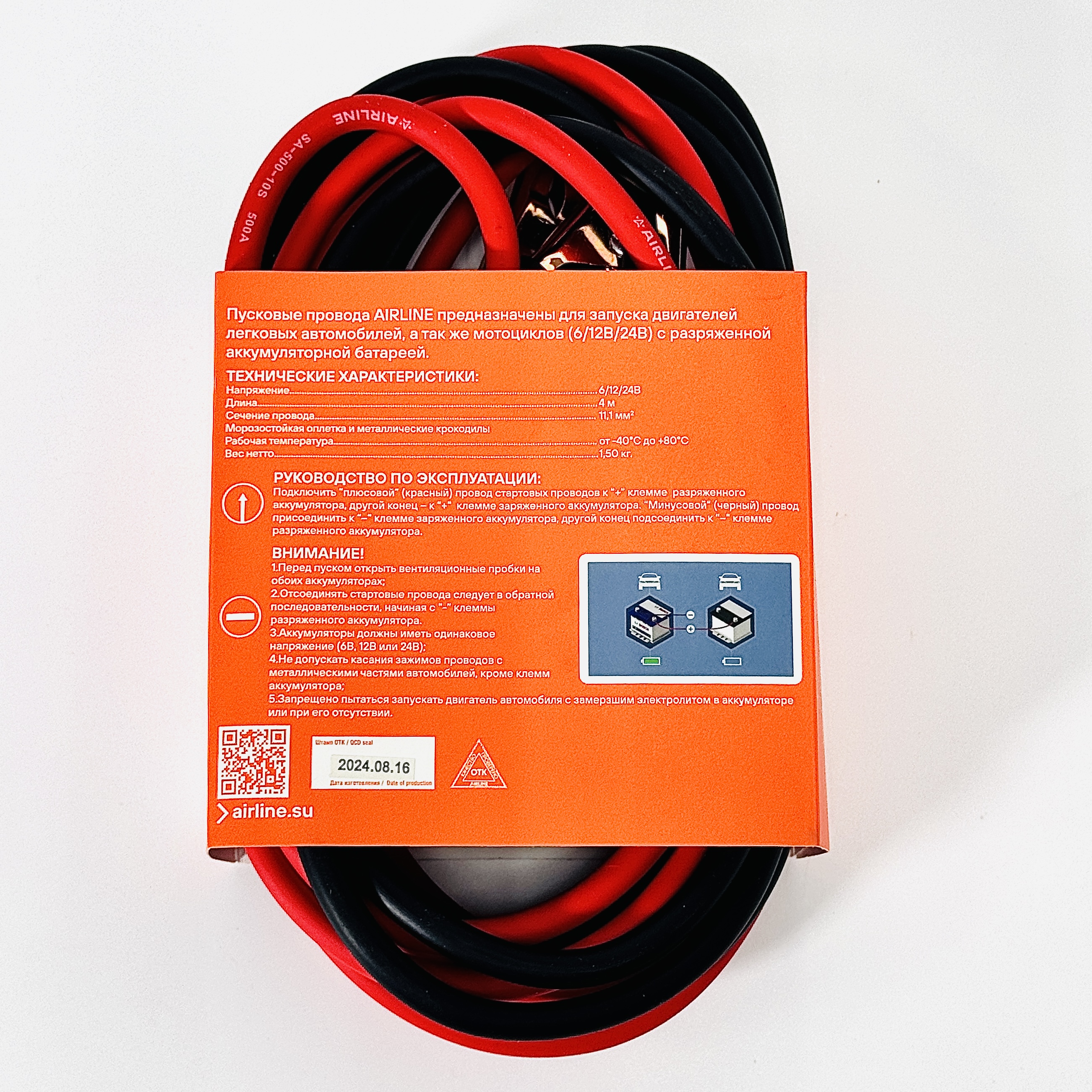 Провода прикуривания 500А (4м, 12/24В) (серия STANDARD) (SA-500-10S) AIRLINE