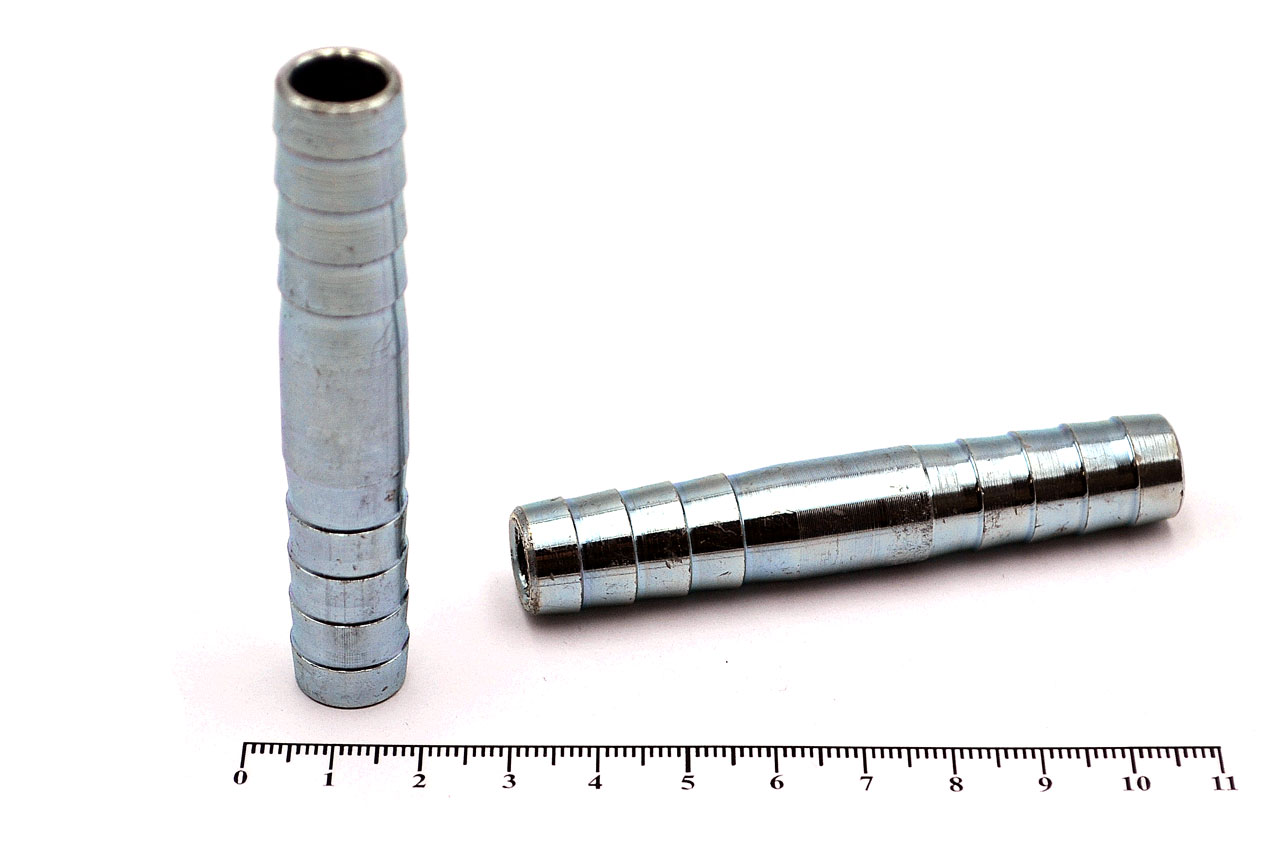 13 мм – наружный диаметр ремонтного соединения, внутренний диаметр рукава (шланга).Длина ремонтного соединения: 60 ммНоминальное рабочее давление: 5 барРабочая температура: от -20°C до +65°CВес 1 шт: 0.038 кгПрименение: ремонтное соединение тип «Ёлочка» - штуцер из оцинкованной стали с зубчатой насечкой на обоих концах, используется для наращивания шлангов одного диаметра (при соединении нескольких кусков), либо для быстрого устранения повреждения шланга. Ремонтное соединение тип «Ёлочка» неразъемное (штуцер). Может использоваться для построения длинномерной трубопроводной системы. Для обеспечения надежного и герметичного соединения рукавов рекомендуется использовать силовые одноболтовые или двуболтовые хомуты. Изготовлено из высококачественной стали, защищенной цинковым гальваническим покрытием, что препятствует возникновению коррозии и обеспечивает длительный срок службы изделия.