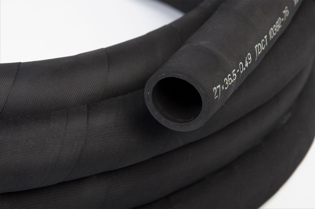 Класс: применяются в качестве гибких трубопроводов для подачи под давлением бензина, топлив, масел, воды, щелочей и кислот (до 20%), кроме азотной кислоты.Внутренний диаметр рукава: 27 мм (±0,5)Наружный диаметр рукава: 36.5 мм (±1,5)Рабочее давление: 0.49 МПаВес 1 п.м.: 0.593 кгОписание: состоят из внутреннего резинового слоя, нитяного каркаса (усиления) и наружного слоя из озоностойкой резины. Рукав имеет трехкратный запас прочности при разрыве гидравлическим давлением.Работоспособность от -50°С до 90°С.Маркировка наносится на поверхность рукава с указанием:- условного наименования предприятия-изготовителя или его товарный знак- месяца и года изготовленияМинимальный радиус изгиба: 270 мм
