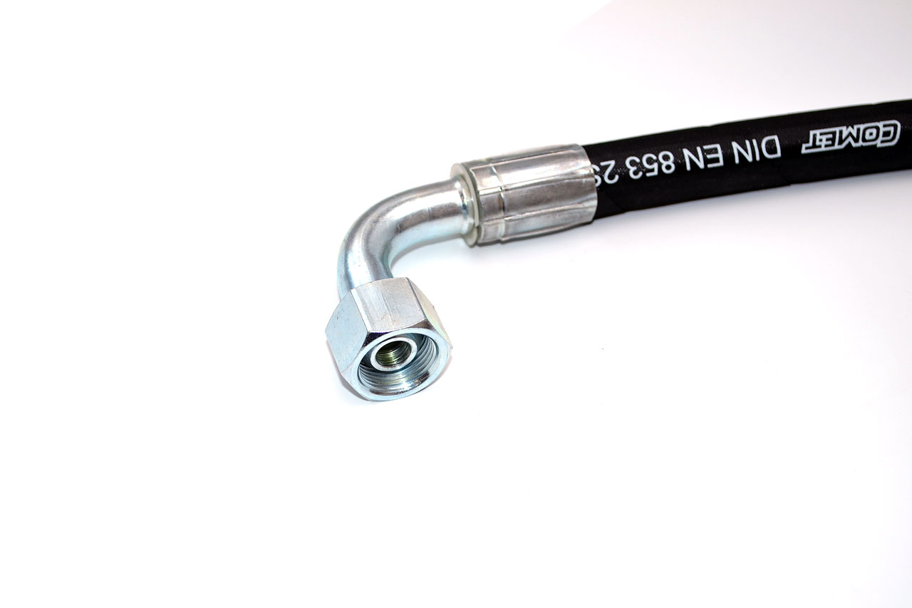 Внутренний диаметр: 12 ммНаружный диаметр: 22.2 ммДлина рукава: 1250 ммРабочее давление: 27.5 МПаРазрывное давление: 110 МПаКоличество металлических оплёток внутри стенки рукава: 2Ресурс работы: не менее 350 тысяч цикловРукав с двух сторон обжат фитингами DK(г)22х1.5с одной стороны гнутый наконечник 90°Размер ключа для накидной гайки фитинга: 27Описание: Рукава РВД – это рукава высокого давления с металлическими оплетками, опрессованные фитингами на концах. Применяются в гидросистемах среднего и высокого давления для подачи рабочей жидкости от гидрораспределителей в исполнительные приводы.Фитинги на концах рукава имеют сферический ниппель ("яблоко") и накидную гайку. Угол уплотнения на конусе 37°. Резьба метрическая цилиндрическая.Температура рабочей среды:-бензин от -40°C до +25°C-керосин, гидравлические и моторные масла на нефтяной основе и их заменители от -40°C до +100°C-вода и водомасляная эмульсия от +5°C до +93°C