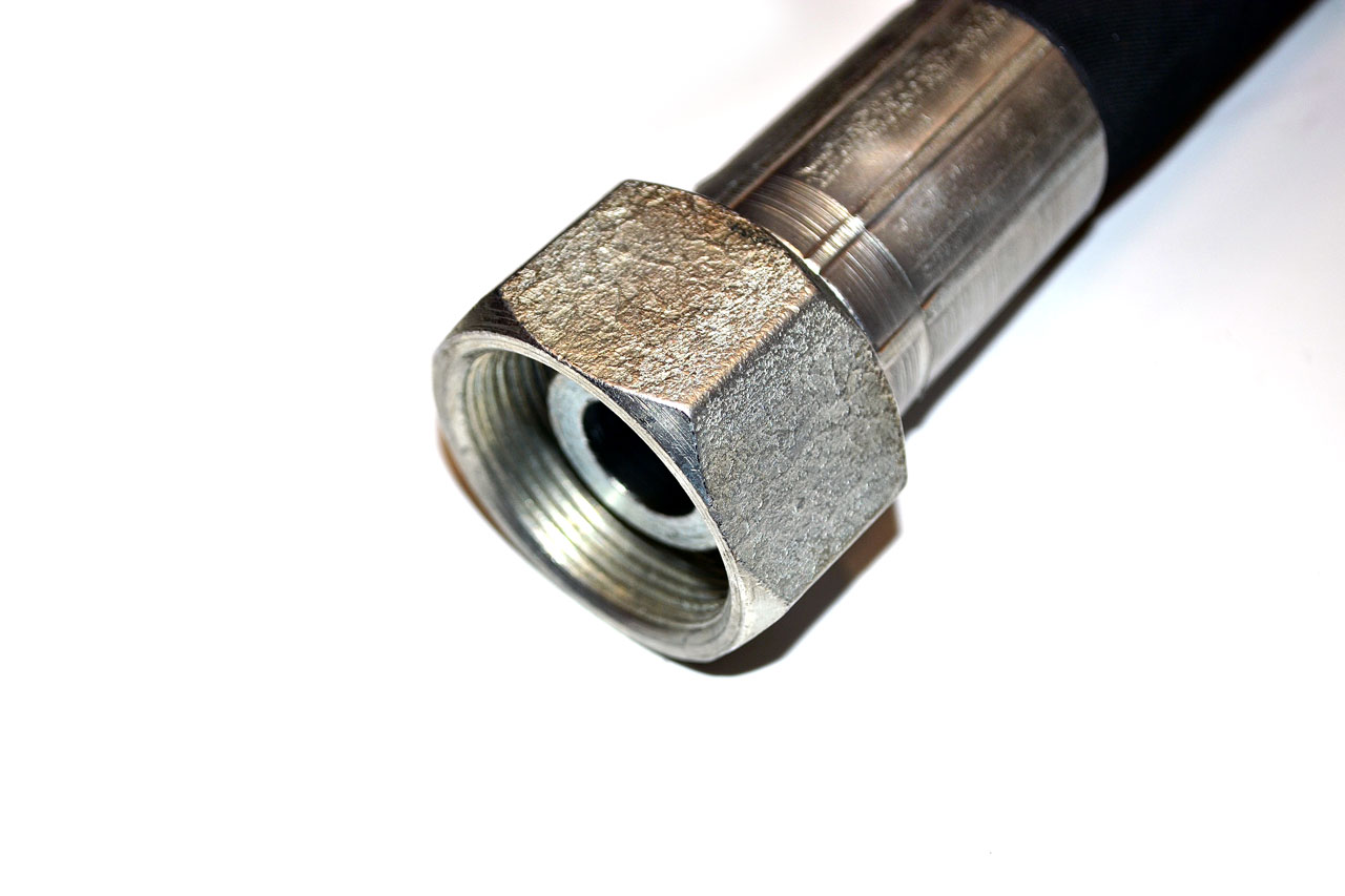 Внутренний диаметр: 25 ммНаружный диаметр: 34.9 ммДлина рукава: 1650 ммРабочее давление: 38 МПаРазрывное давление: 152 МПаКоличество металлических навивок внутри стенки рукава: 4Ресурс работы: не менее 600 тысяч цикловРукав с двух сторон обжат фитингами DK(г)42х2.0Размер ключа для накидной гайки фитинга: 50Описание: Рукава РВД – это рукава высокого давления с металлическими оплетками, опрессованные фитингами на концах. Применяются в гидросистемах среднего и высокого давления для подачи рабочей жидкости от гидрораспределителей в исполнительные приводы.Фитинги на концах рукава имеют сферический ниппель ("яблоко") и накидную гайку. Угол уплотнения на конусе 37°. Резьба метрическая цилиндрическая.Температура рабочей среды:-бензин от -40°C до +25°C-керосин, гидравлические и моторные масла на нефтяной основе и их заменители от -40°C до +100°C-вода и водомасляная эмульсия от +5°C до +93°C