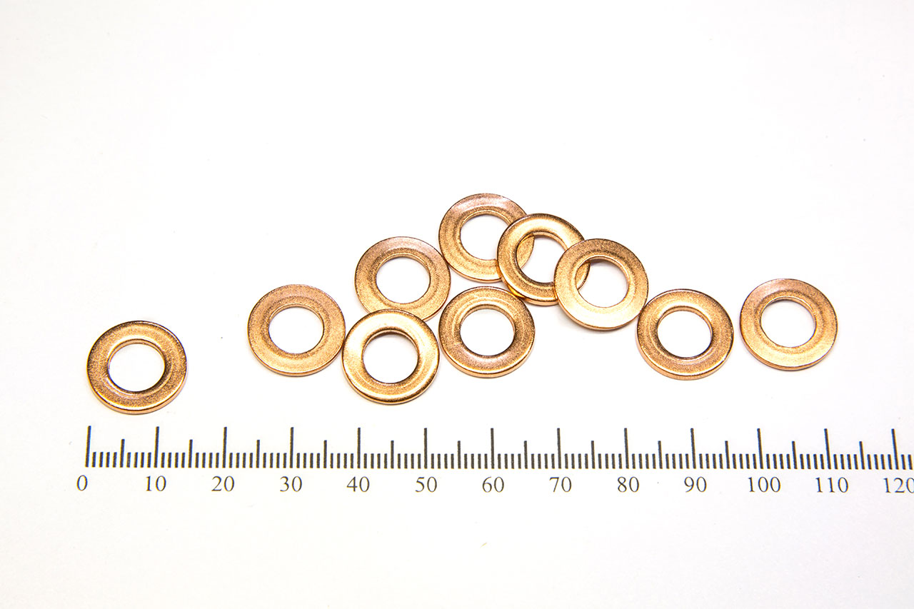 Точные размеры: 8.3х14.9х1.5 ммИзготовитель: РоссияМедные шайбы применяют для уплотнения в топливных насосах, двигателях, масляных насосах, гидравлических, пневматических соединениях. Шайба имеет высокую пластичность и высокую стойкость против коррозии, это позволяет применять в агрегатах высокого давления. Физико-химические свойства меди обеспечивают работоспособность шайб в различных агрессивных средах при больших амплитудах рабочих температур.