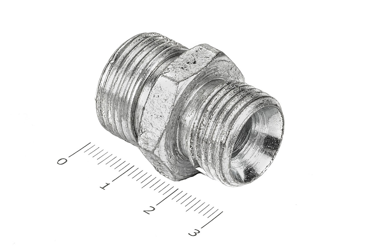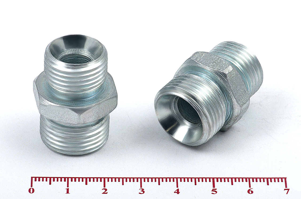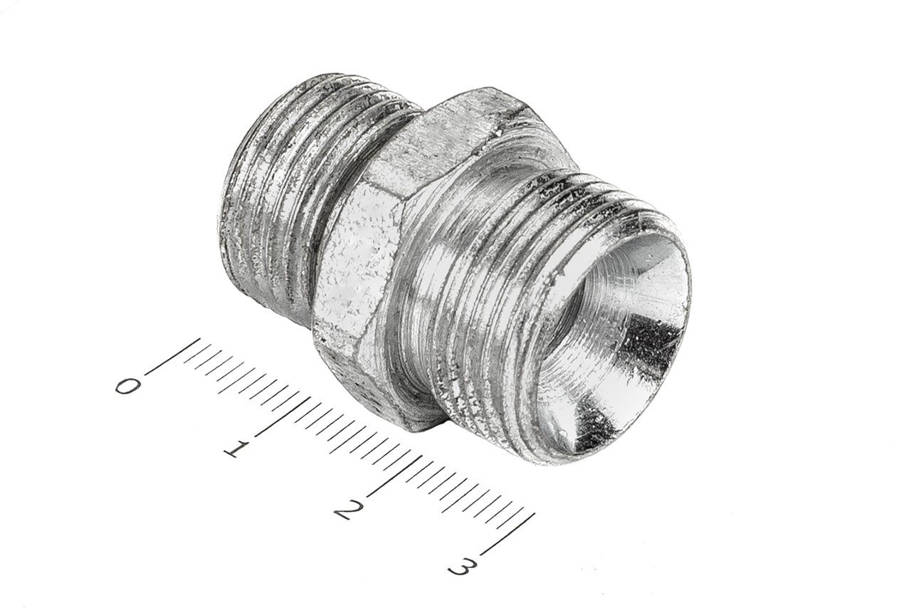 Соединительные переходные штуцеры прямые с наружной резьбой и внешним шестигранником имеющие внутренний конус, применяется для соединения рукавов высокого давления между собой, а также для присоединения РВД к насосам, гидроцилиндрам, гидроусилителям и т.д.Ключ под гайку: 22/24Наружные диаметры: 15 мм, 18 ммВнутренние диаметры: 8.5 мм, 8.5 ммРезьба метрическая цилиндрическая: М18х1.5 с другой стороны М20х1.5Материал: 35 сталь, покрытие цинковое 9 мкм с хроматированиемТемпература рабочей среды:-бензин от -40°C до +25°C-керосин, гидравлические и моторные масла на нефтяной основе и их заменители от -40°C до +100°C-вода и водомасляная эмульсия от +5°C до +93°CШтуцеры соединительные характеризуются:-высокая прочность и надежность конструкции-устойчивостью к нагрузкам и вибрациям-устойчивостью к коррозии и окислению-устойчивость к температурам и давлению-устойчивость к сложным внешним условиям-длительный срок эксплуатации