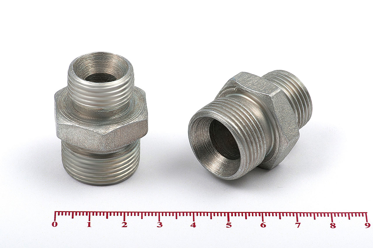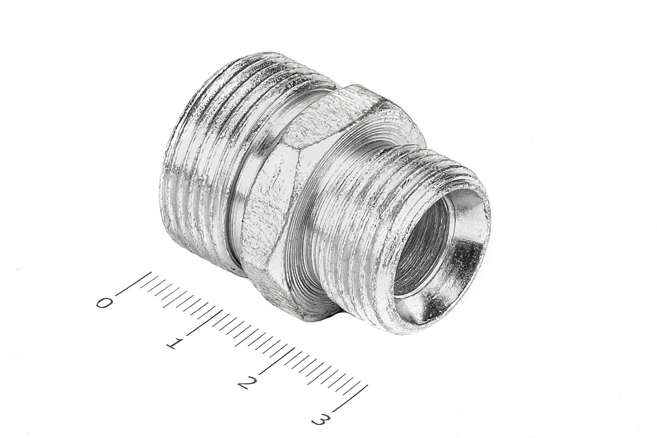 Соединительные переходные штуцеры прямые с наружной резьбой и внешним шестигранником имеющие внутренний конус, применяется для соединения рукавов высокого давления между собой, а также для присоединения РВД к насосам, гидроцилиндрам, гидроусилителям и т.д.Ключ под гайку: 24/30Наружные диаметры: 18 мм, 21 ммВнутренние диаметры: 11 мм, 13.5 ммРезьба метрическая цилиндрическая: М20х1.5 с другой стороны М24х1.5Материал: 35 сталь, покрытие цинковое 9 мкм с хроматированиемТемпература рабочей среды:-бензин от -40°C до +25°C-керосин, гидравлические и моторные масла на нефтяной основе и их заменители от -40°C до +100°C-вода и водомасляная эмульсия от +5°C до +93°CШтуцеры соединительные характеризуются:-высокая прочность и надежность конструкции-устойчивостью к нагрузкам и вибрациям-устойчивостью к коррозии и окислению-устойчивость к температурам и давлению-устойчивость к сложным внешним условиям-длительный срок эксплуатации