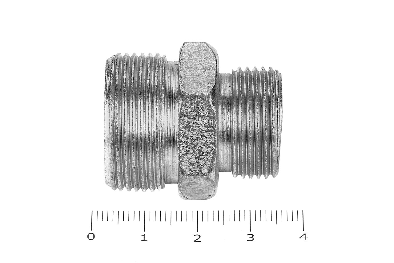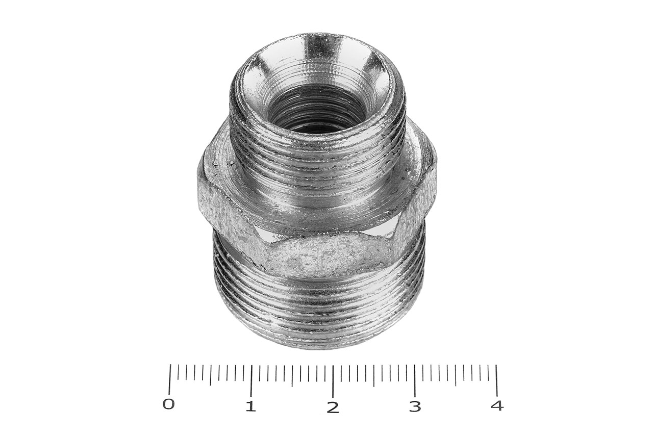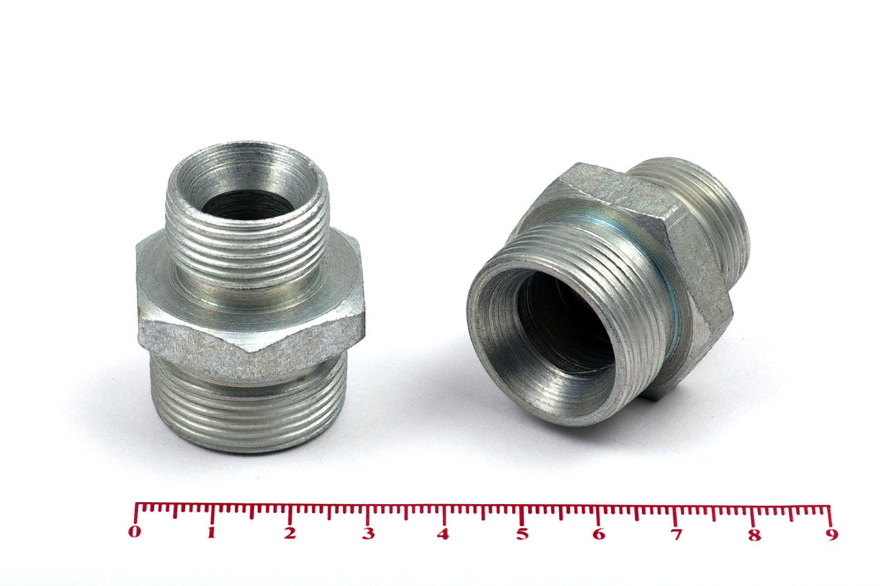 Соединительные переходные штуцеры прямые с наружной резьбой и внешним шестигранником имеющие внутренний конус, применяется для соединения рукавов высокого давления между собой, а также для присоединения РВД к насосам, гидроцилиндрам, гидроусилителям и т.д.Ключ под гайку: 27/32Наружные диаметры: 19.5 мм, 24.5 ммВнутренние диаметры: 13 мм, 14 ммРезьба метрическая цилиндрическая: М22х1.5 с другой стороны М27х1.5Материал: 35 сталь, покрытие цинковое 9 мкм с хроматированиемТемпература рабочей среды:-бензин от -40°C до +25°C-керосин, гидравлические и моторные масла на нефтяной основе и их заменители от -40°C до +100°C-вода и водомасляная эмульсия от +5°C до +93°CШтуцеры соединительные характеризуются:-высокая прочность и надежность конструкции-устойчивостью к нагрузкам и вибрациям-устойчивостью к коррозии и окислению-устойчивость к температурам и давлению-устойчивость к сложным внешним условиям-длительный срок эксплуатации