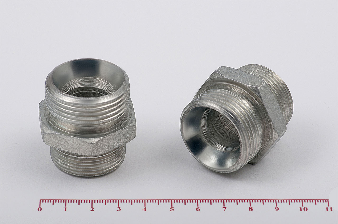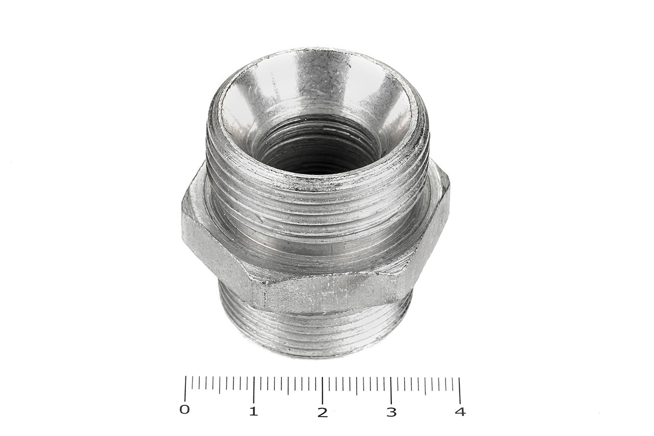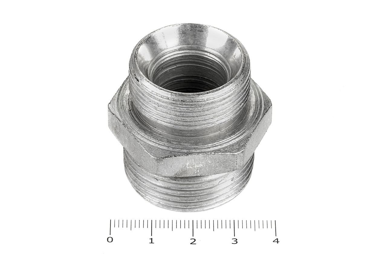 Соединительные переходные штуцеры прямые с наружной резьбой и внешним шестигранником имеющие внутренний конус, применяется для соединения рукавов высокого давления между собой, а также для присоединения РВД к насосам, гидроцилиндрам, гидроусилителям и т.д.Ключ под гайку: 36/41Наружные диаметры: 27 мм, 30 ммВнутренние диаметры: 18 мм, 19 ммРезьба метрическая цилиндрическая: М30х1.5 с другой стороны М33х2.0Материал: 35 сталь, покрытие цинковое 9 мкм с хроматированиемТемпература рабочей среды:-бензин от -40°C до +25°C-керосин, гидравлические и моторные масла на нефтяной основе и их заменители от -40°C до +100°C-вода и водомасляная эмульсия от +5°C до +93°CШтуцеры соединительные характеризуются:-высокая прочность и надежность конструкции-устойчивостью к нагрузкам и вибрациям-устойчивостью к коррозии и окислению-устойчивость к температурам и давлению-устойчивость к сложным внешним условиям-длительный срок эксплуатации