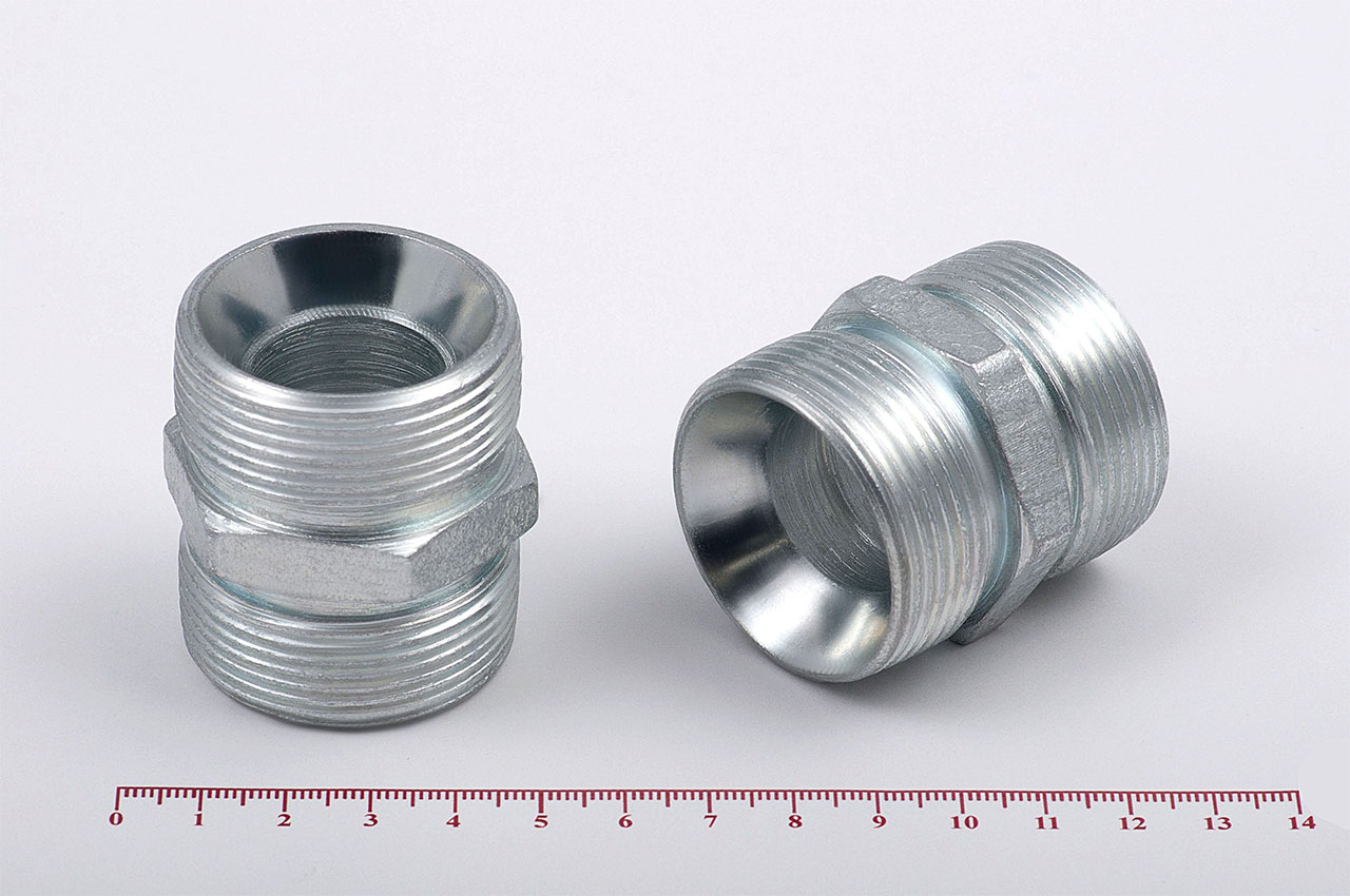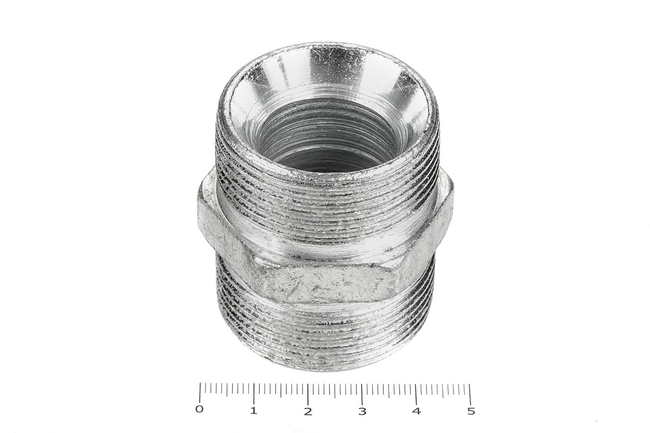 Соединительные штуцеры прямые с наружной резьбой и внешним шестигранником имеющие внутренний конус, применяется для соединения рукавов высокого давления между собой, а также для присоединения РВД к насосам, гидроцилиндрам, гидроусилителям и т.д.Ключ под гайку: 50Наружный диаметр: 35 ммВнутренний диаметр: 26 ммРезьба метрическая цилиндрическая: М42х2.0Внешний шестигранник имеет грань 42 ммМатериал: 35 сталь, покрытие цинковое 9 мкм с хроматированиемТемпература рабочей среды:-бензин от -40°C до +25°C-керосин, гидравлические и моторные масла на нефтяной основе и их заменители от -40°C до +100°C-вода и водомасляная эмульсия от +5°C до +93°CШтуцеры соединительные характеризуются:-высокая прочность и надежность конструкции-устойчивостью к нагрузкам и вибрациям-устойчивостью к коррозии и окислению-устойчивость к температурам и давлению-устойчивость к сложным внешним условиям-длительный срок эксплуатации